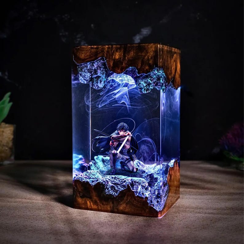 Ručno izrađena epoxy lampa inspirisana Levi Ackermanom iz anime serijala Attack on Titan.