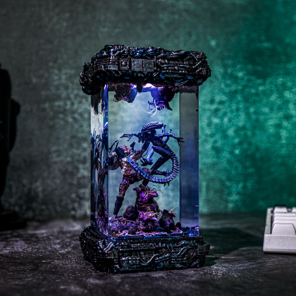 Xenomorph Vs Predator Diorama Lamp nije samo lampa – to je epski umetnički komad koji pretvara vaš prostor u pozornicu legendarne borbe.